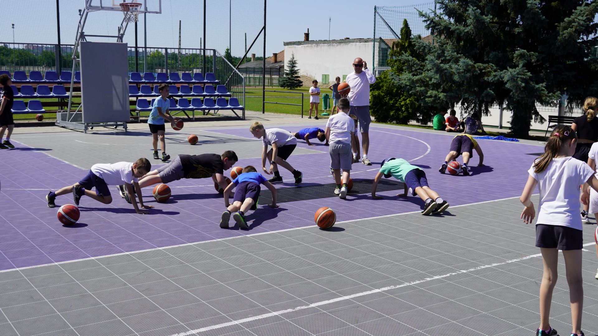 Kosarasaink a kinti, műanyagborítású pályán, a nagy melegben bizony megversenyeztették a rájuk bízott gyerekeket, két csapatot kialakítva ziccerdobások végrehajtásával mérkőztek meg a felek, a veszteseknek pedig járt a jól megérdemelt három darab karhajlítás.