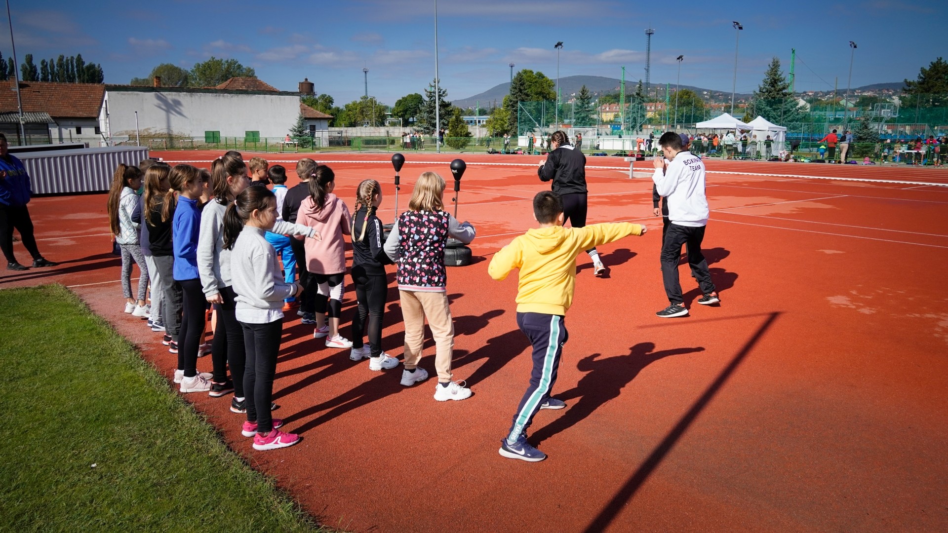 Közel 280 gyerek érkezett ma reggel a Verseny utcába a PTE Deák Ferenc Általános Iskolájából, és próbálhatta ki a labdarúgást, kosárlabdát, sportlövészetet, tájékozódási futást, ökölvívást, judot és atlétikát.