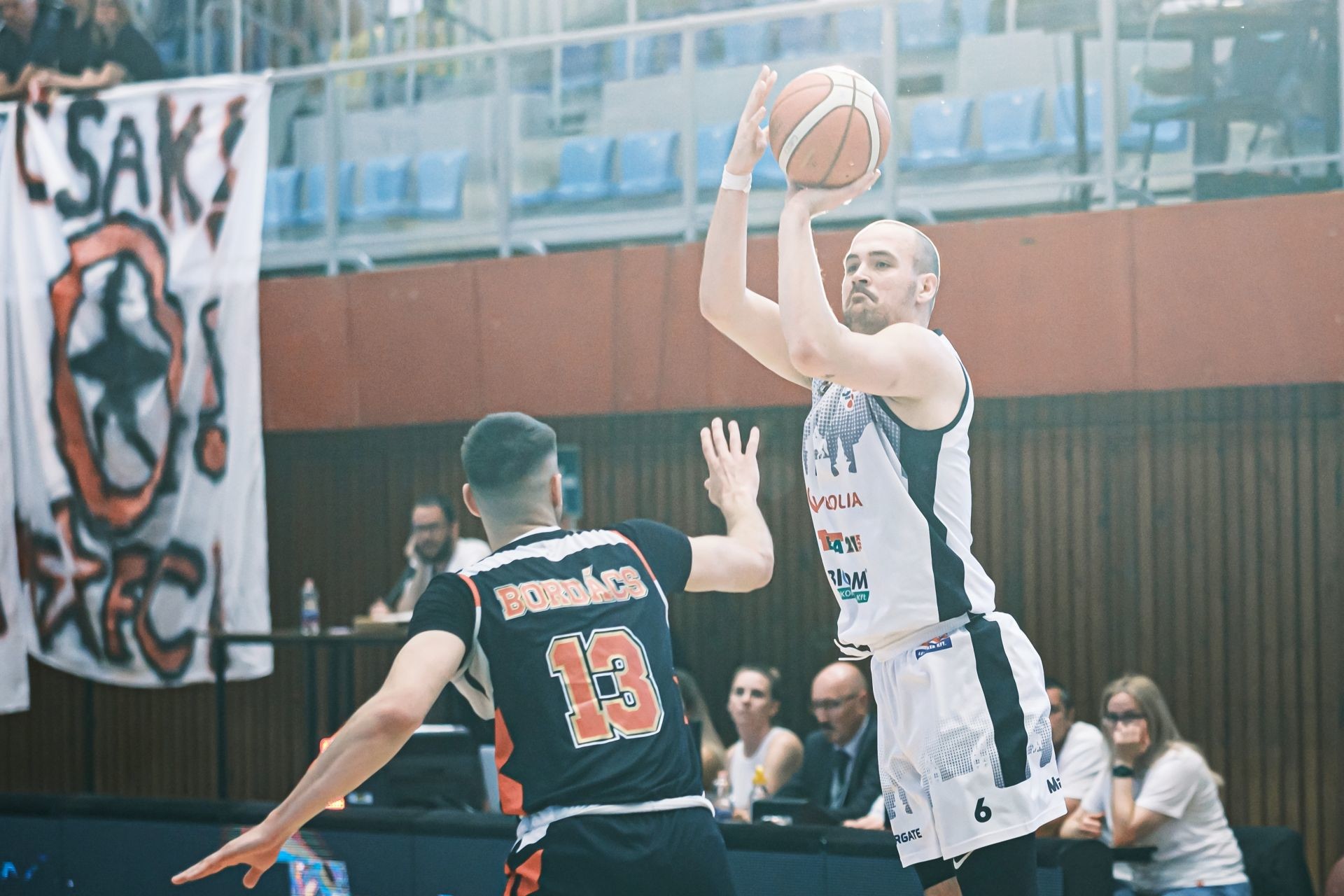 A kinti dobásinkkal aztán a második negyedben őrületbe kergettük Lakits András együttesét. Mokánszki, Németh és Molnár triplája után is elég jó volt már a hangulat a lelátón, de amikor a csereként beálló Radó verte be kintről, akkor szabályosan felrobbant a Lauber. Nem csoda, hiszen ezzel tudtuk visszavenni a vezetést. Inenntől aztán egy csiki-csuki kezdődött, ami végül egált adott ki a nagyszünetre.