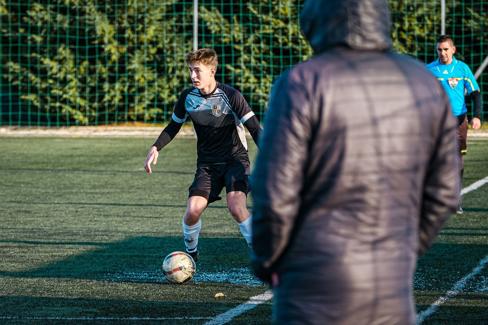 Beköszöntött a tél, napsütéses, de rendkívül kellemetlenül csípős időben kezdődött a találkozó. Már a melegítő játékosokon látni lehetet az igyekezetet, hogy a szeles időben jobban felpergessék magukat, a PVSK műfüves pályáján rendezett találkozó előtt.