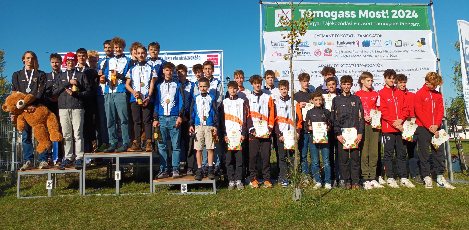 Minden csapatba kellett négy utánpótlás korú (14,16,18,20 éves) és egy felnőtt versenyző. Ez a versenyszám megmutatja az egyesületek erejét, hogy hány csapatot tudnak kiállítani, mert minden korosztályból kell versenyző a csapatba. Mi három fiú és egy lány csapattal indultunk. Két fiúcsapatunk is pódiumra tudott állni és a lányváltó is pontszerző helyen végzett.