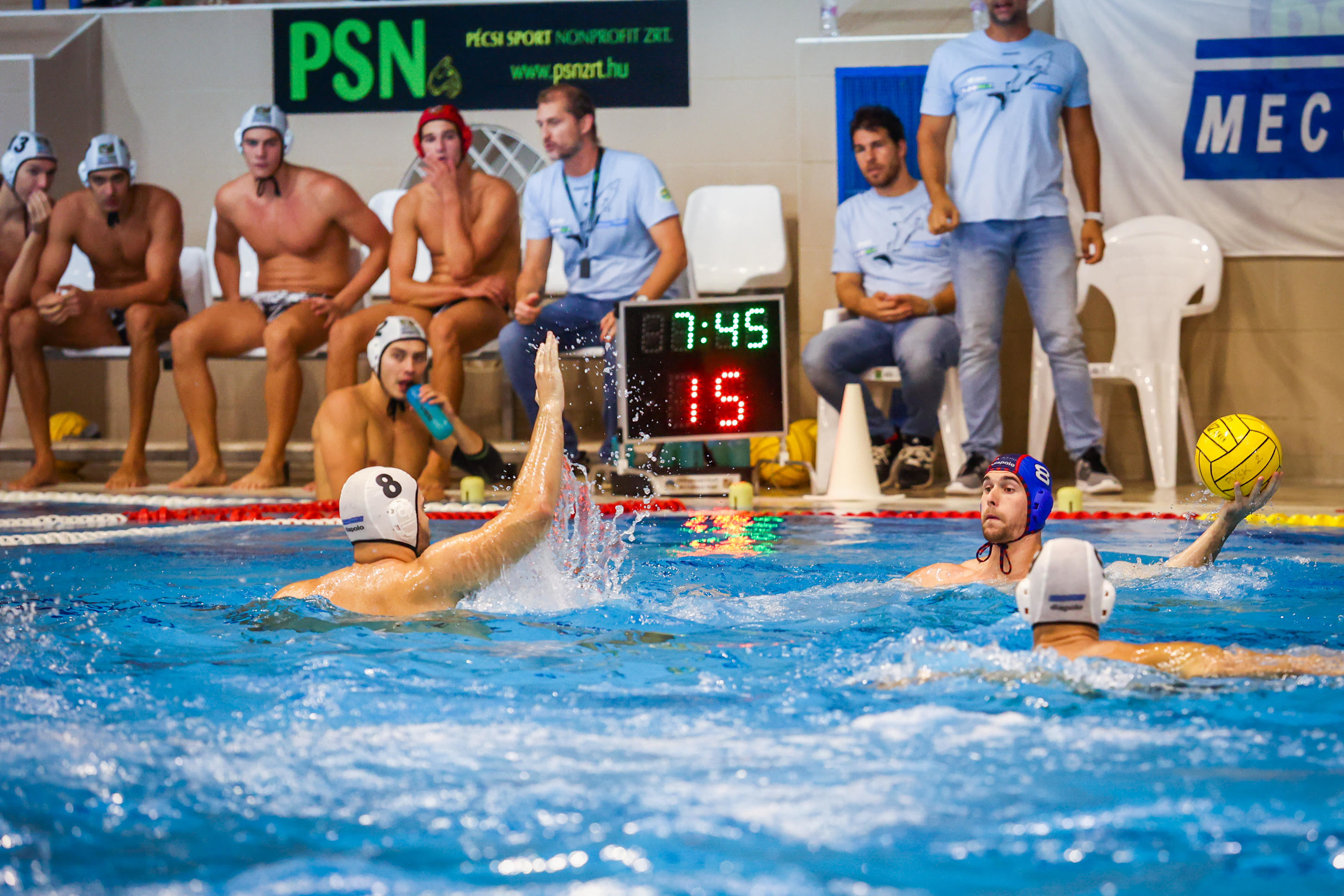 Egy nemzetközi kupacsapat elleni, igen nehéznek ígérkező hétközi mérkőzéssel folytatódik a vízilabda bajnokság. A PVSK-Mecsek Füszért csapata az Eurokupából hétvégén kiesett OSC-t fogadja.